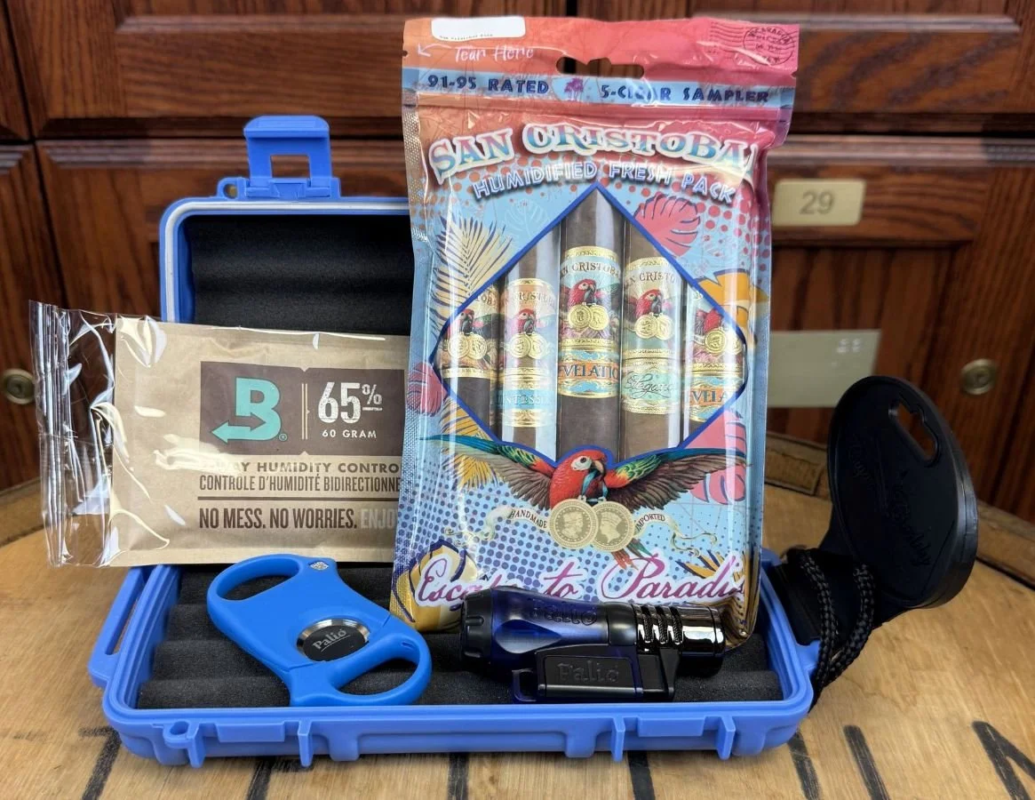 This curated set brings together a mix of cigar accessories and a cigar sampler pack to elevate the smoking experience. Featuring a humidity control pack from Minnetonka’s own Boveda, you can ensure every smoke is enjoyed at its best.